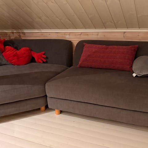 Sohva ehjä ja hyvässä kunnossa, mutta kangas nukkainen. Divaaniosan syvyys 145cm ja leveys 85cm.