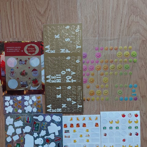Kaksi pienempää tarraa olleet jossain kiinni, muita ei käytetty.