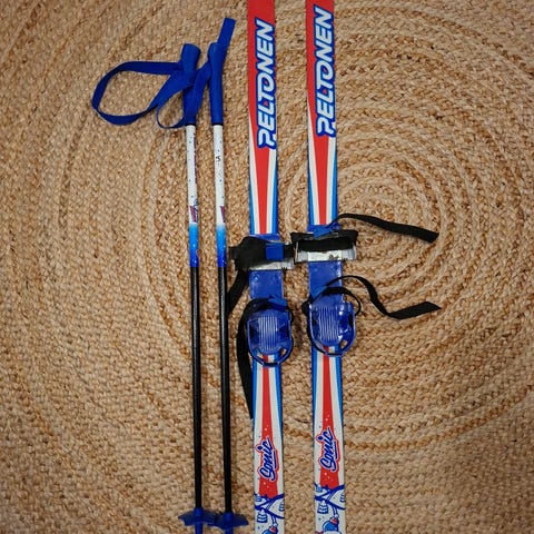 Sukset 110cm, meille uutena ostettu. Sauvat mukaan.
