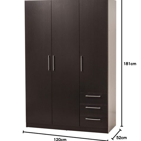 3-osainen vaatekaappi, peltiä. Ovet Ruskeat, muuten Valkoinen, lukolliset ovet, avaimet tallella ovissa.
