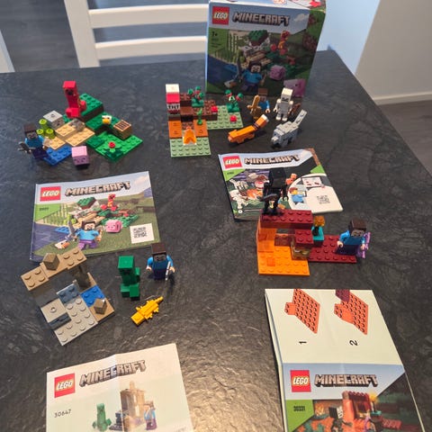 Myydään kuvan Lego Minecraft hahmot ja eläimet.
