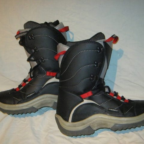 Laadukkaat Salomonin lumilautakengät. Kokomerkintä on 43 1/3, kenkien sisämitta on 27.50 cm (menevät mielestäni parhaiten sellaiselle jonka kengän koko normaalisti noin 42-43) Kaikinpuolin todella siistikuntoiset kengät, kaikki lenkit ja nauhat yms. kunnossa. Hinta 95 e