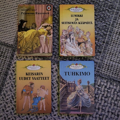 Kuvan satukirjat yhteensä 5 euroa + postimaksu. Kirjat ovat ehjiä ja hyvässä kunnossa.