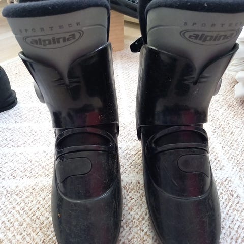 Caber käytetyt laskettelumonot. Mustat kuoret kolmella soljella.