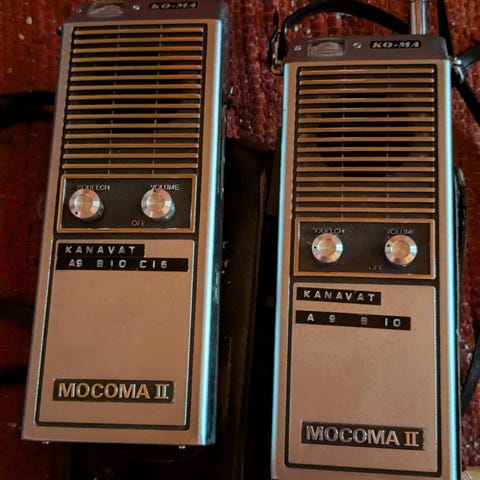 Mocoma III, toimivat, jeesuksen aikaiset LA-puhelimet, Ollut aikoinaan Pirkanmaan ammattikoulun raksa-osaston käytössä. Testattu 9V paristolla että toimii. AA-paristokotelot myös mukaan joista toinen on vähän hapertunut. Mukaan laturi, puulaatikko. Nokialla