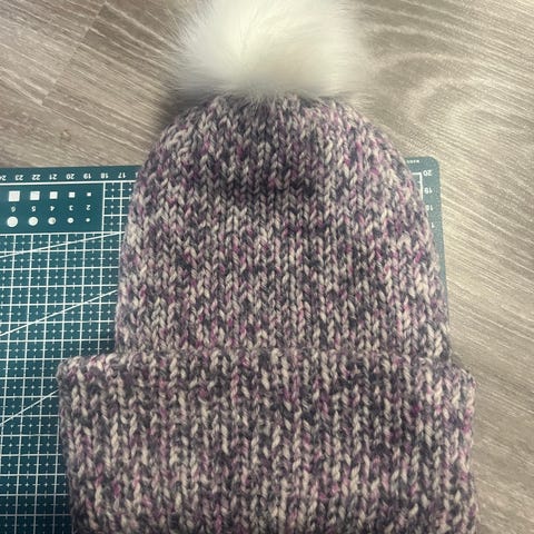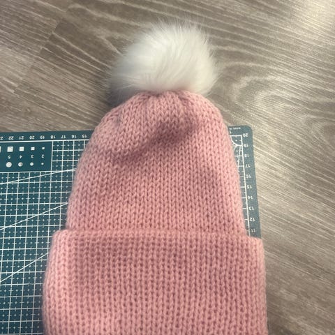 Itsetehty uusi ja käyttämätön pipo karvatupsulla.