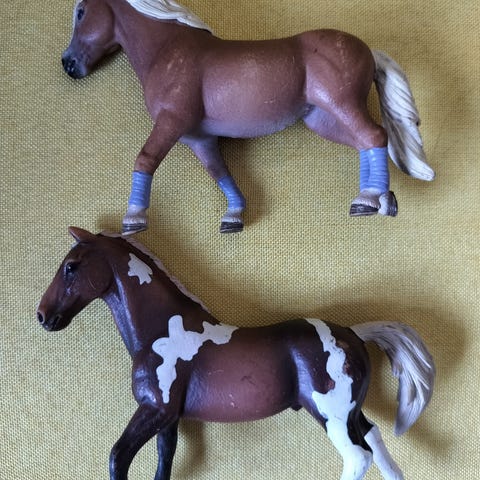 Viisi kappaletta Schleich-hevosia, vaalean harmaa ei ole Schleich. 5€/kpl.