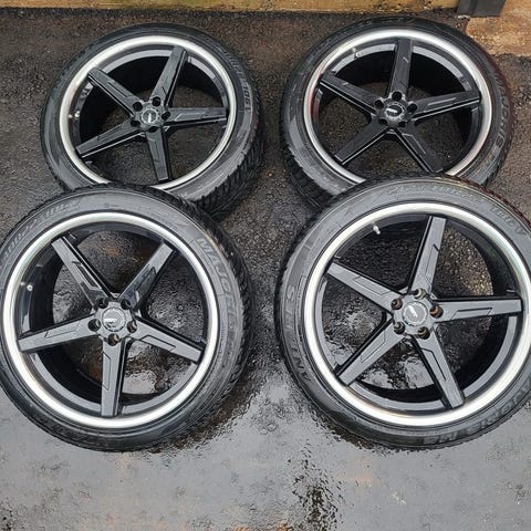 Ylimääräiseksi jääneet vanteet joissa päällä melkein uudet kesärenkaat