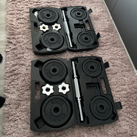 Tästä laaja ja oivallinen painoharjoittelusetti jokaiselle joka haluaa kasvattaa hauista!! 1 kpl painonnostotanko 153 cm pitkä, paksuus 25mm. 4 kpl käsipainotanko a 1,4 kg 25mm. 2 kpl käsipainotanko 30mm. Painot 25mm reiällä: 0,5kg 2kpl, 1,25kg 4kpl, 2,5kg 8kpl, 5kg 4kpl, 10kg 2kpl. Levypainot 30mm reiällä 0,5kg 4kpl, 1kg 8kpl, 2kg 4kpl, 3kg 2kpl. Levypainoja yhteensä 95kg.