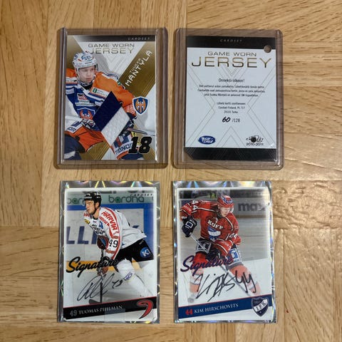 2 game Worn Jersey korttia joissa palat pelipaidoista