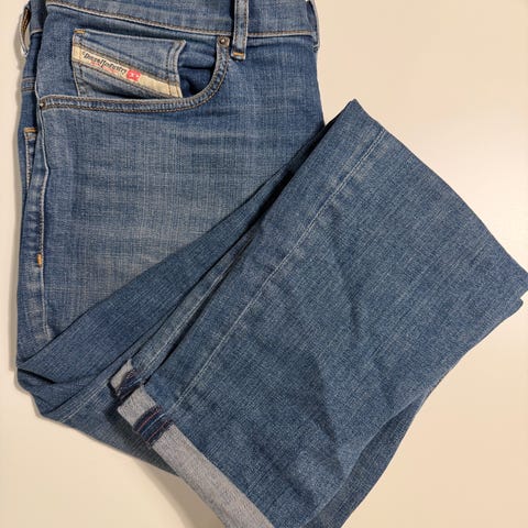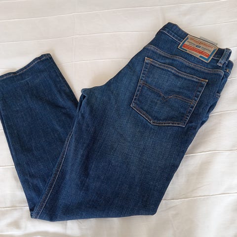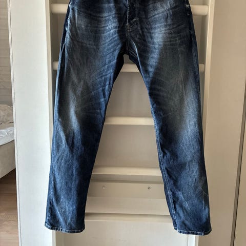 Diesel farkut miehille. Materiaalina denim, väri sininen kulutusefekteillä. Perinteinen viisitaskumalli, nappi- ja vetoketjukiinnitys edessä. Sopivat arkikäyttöön ja vapaa-aikaan.Voin postittaa.