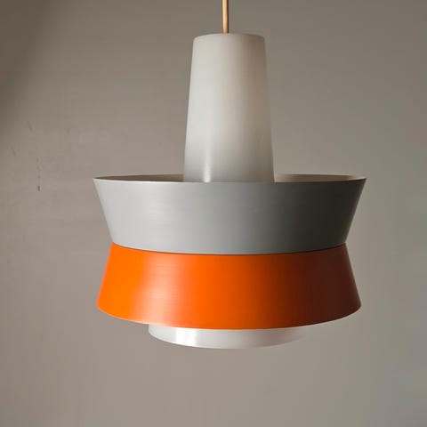 Tanskalainen Lyskaer kattovalaisin 60-luvulta. Korkeus noin 20 cm, halkaisija noin 24 cm. Hyväkuntoinen,yksi pieni 1 cm vaalea naarmu joka näkyy kuvissa. Otettu pois katosta noin vuosi sitten toimivana. Pölyt pyyhitty päällisin puolin.