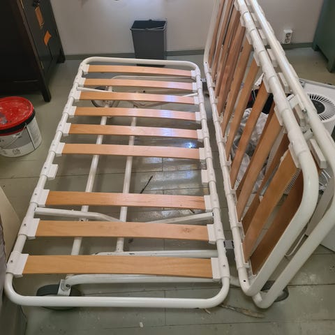 Huom! Yksi poikkilauta murtunut. Ei haittaa käyttöä mutta suosittelen korjaamaan. Mekanismi toimii ja kunto muuten hyvä. Vain nouto.