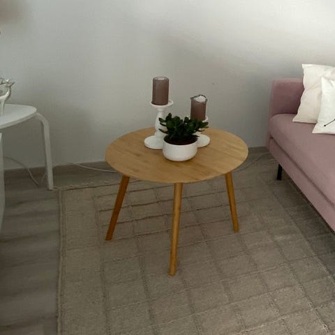 Pyöreä, halkaisija 60 cm, alaosa ja runko matallia.