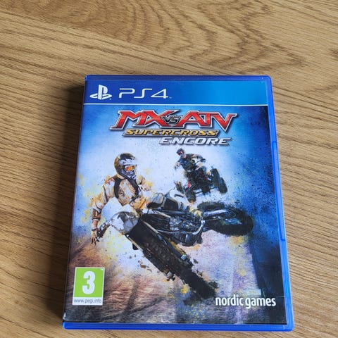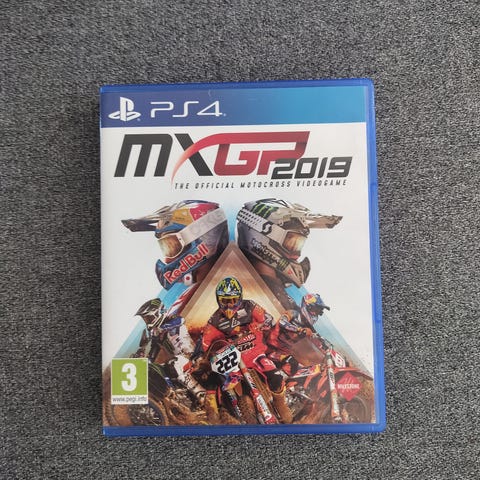 MXGP The Official Motocross Videogame Playstation 4 -peli. Moottorcross-aiheinen ajopeli PS4-konsolille. Pelin ikäraja PEGI 3. Fyysinen levypainos sinisessä PS4-kotelossa.