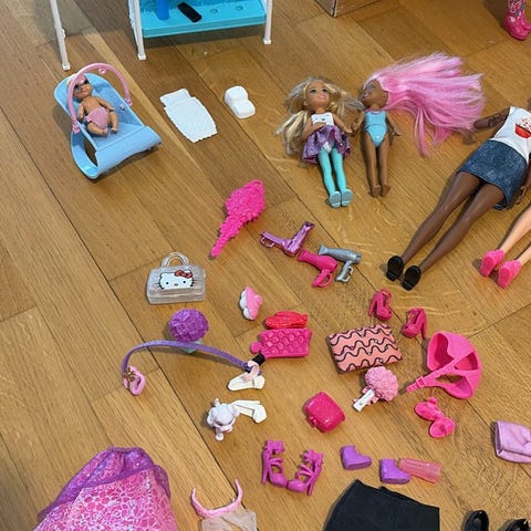 Myydään lelu setti. Osa Barbieita, osa muita ja pari muuta lelua. Huom edessä olevaan barbieen kuuluu paristot mutta meillä ei kyseisiä paristoja ole joten en saanut testattua toimivuutta. Kyseisen Barbien mekossa myös tahra josta kuva. Koirakoti. Haku 20540 alueelta. Ei pitkiä varauksia.