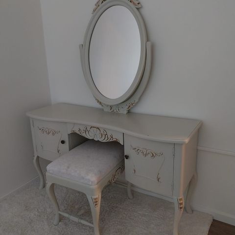 Kaunis kampauspöytä ja rahi, lienee talonpoikaisrokokoota.