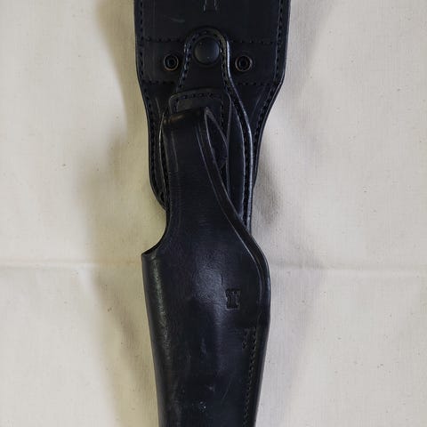 Myydään musta, nahkainen pistoolin vyökotelo. Valmistaja Hellweg. Ehjä ja uuden veroinen. Oikeakätinen. Sopii kapealle pistoolille, kuten FN:lle. Vyökorkeus vaihdettavissa ylös tai alas. Kaltevuudelle kolme säätövaihtoehtoa nepparikiinnityksellä kummallekin vyökorkeudelle. Suomen Puolustusvoimien käytöstä poistama.