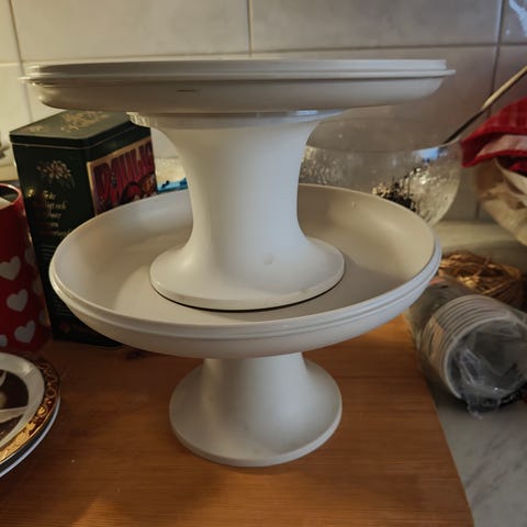 Dippiastia, jossa keskellä paikka dipille ja 3 erillistä siirrettävää lokeroa. Tummaa pohjaa voi käyttää kantena. Kannen kanssa halkaisija 38 cm. Ei postitusta.