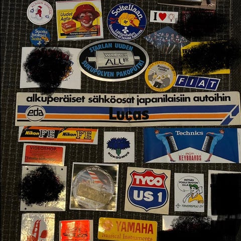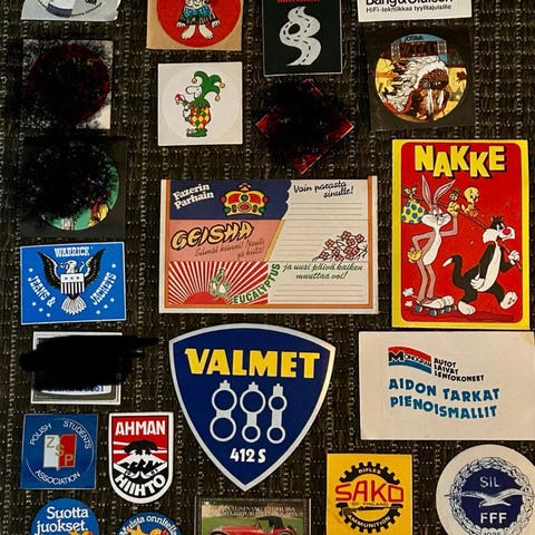 Kokoelma 13 erilaisia vanhoja vintage tarroja 70- ja 80-luvuilta.