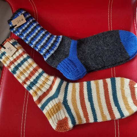 Kudon näitä villasukkia tilauksesta Novitan Nalle-langasta tai vastaavan vahvuisesta langasta. Esitä väritoiveita.