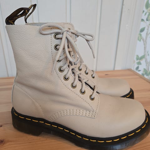 Dr. Martens nilkkurit, koko 38. Mustavalkoinen, käärmekuosia muistuttava pintakuviointi. Nauhakiinnitys edessä ja vetolenkki varressa. Kumipohja, jossa uritus. Sopivat arkikäyttöön ja vapaa-aikaan eri vuodenaikoina sukkien tai pohjallisten mukaan.