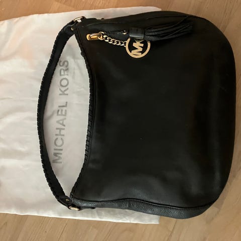 Michael Kors nahkalaukku unisex. Laukku on valmistettu pehmeästä nahasta ja siinä on vaaleat olkahihnat sekä metallinen MK-riipus. Pohjassa on metallinastat, jotka suojaavat laukkua kulumiselta. Sopii arkilaukuksi tai työ-/opiskelukäyttöön ja voidaan käyttää sekä olkalaukkuna että käsilaukkuna.