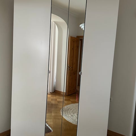 Vaatekaappi ollut n.vuoden käytössä. Sisäpuolella lastuseinän naulat ovat hieman vaurioittaneet paria kohtaa.