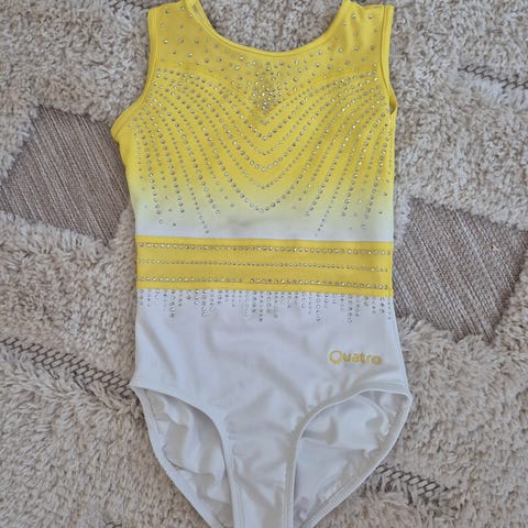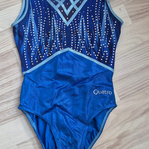 Quatron voimistelupuku koko CLA. Timantteja puuttuu useita, muuten siisti ja ehjä. Eläintalous.
