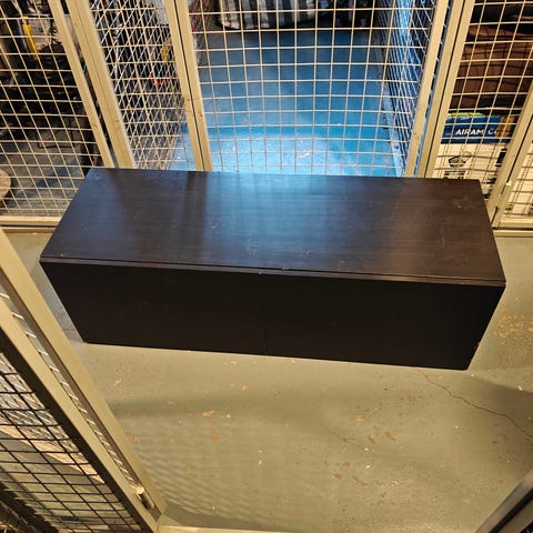 Hyväkuntoinen musta metallinen tv-taso suoraan käytöstä. En löytänyt suurempia virheitä. Koiratalous
