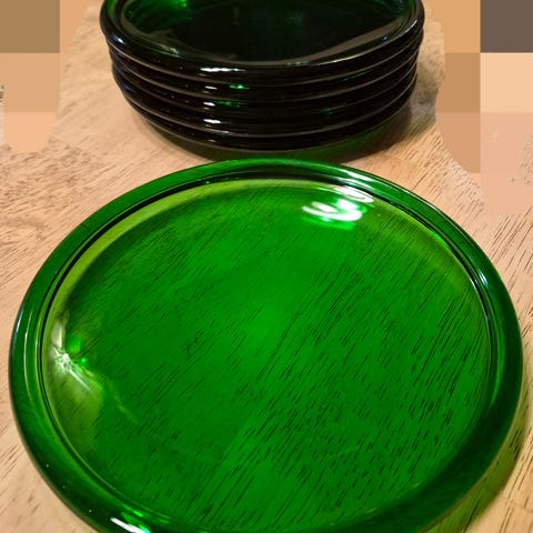 Oikein hyvässä kunnossa olevat Nuutajärven lasin vihreät Luna jälkiruokakulhot 5 kpl.