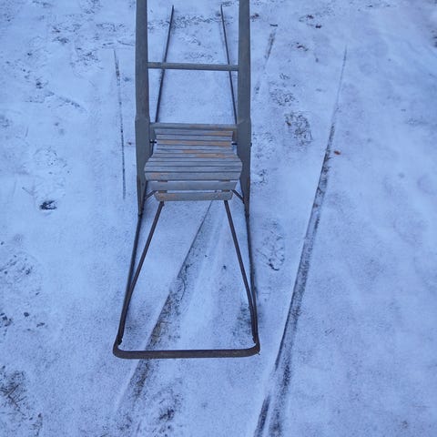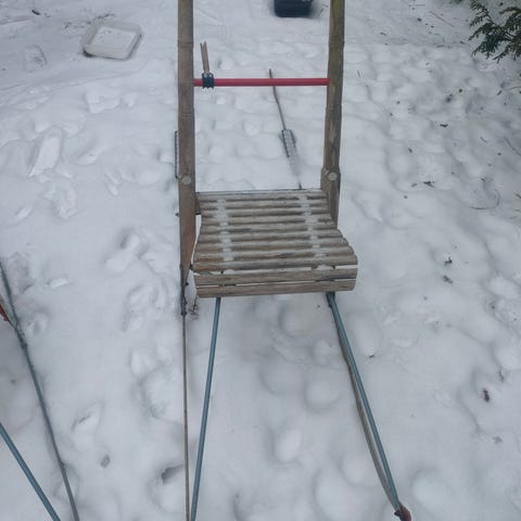 Punainen, erittäin hyvässä kunnossa oleva potkukelkka