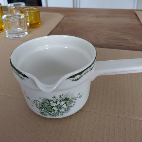 Myytävänä Vesta sarjan kannu, sokerikko, kermakko, 7 kpl pikkulautasia sekä 5 kpl pullalautasia.