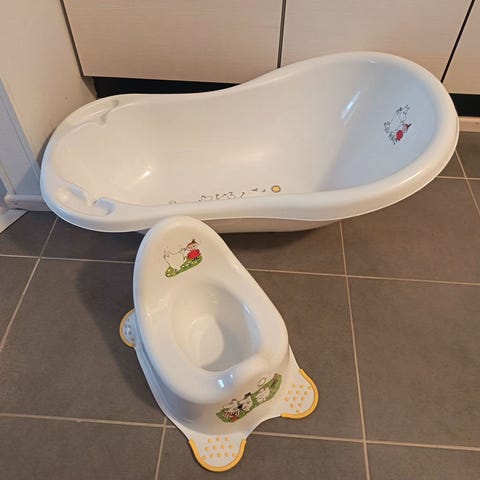 Ammetta käytetty ehkä kolme kertaa, meidän lapsista ei ykskään oo tykännyt polskia ammeessa vaan kököttäneet suihkussa 😅😂