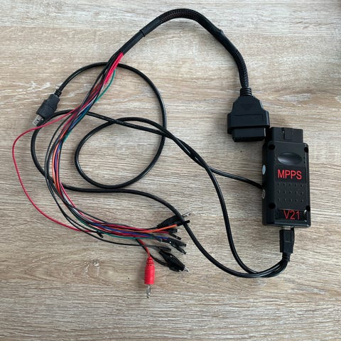 MPPS V18 OBD2-ohjelmointilaite ajoneuvon ohjainyksikön lukemiseen ja kirjoittamiseen. Laite liitetään autoon OBD2-liittimen kautta ja tietokoneeseen USB-kaapelilla. Soveltuu moottorinohjauksen datan käsittelyyn ja diagnostiikkatoimintoihin yhteensopivissa ajoneuvoissa. Paketissa on MPPS V18 -yksikkö ja siihen kiinteästi liitetty USB-kaapeli.