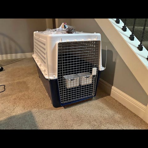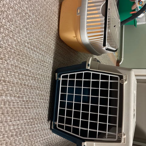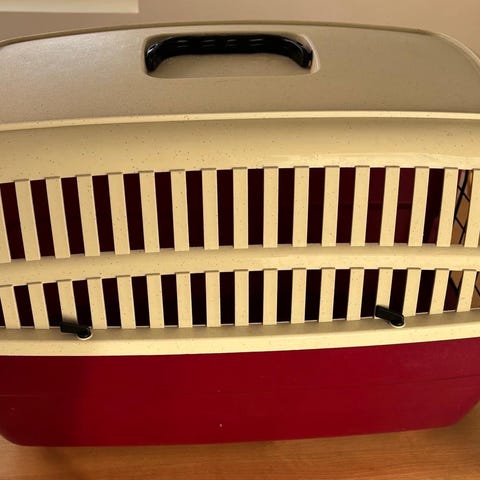 Muovinen kuljetuslaatikko lemmikille, sopii esimerkiksi kissalle tai pienelle koiralle (max 8kg). Laatikossa on tummanharmaa pohja ja vaalea yläosa, joissa useita ilmanvaihtoaukkoja. Edessä on metallinen ritiläovi, joka sulkeutuu lukittavalla mekanismilla. Yläosassa on kantokahva helpottamaan siirtelyä. Laatikko koostuu kahdesta osasta, jotka on kiinnitetty toisiinsa sivuilla olevilla saloilla. Sisällä on pehmuste, joka lisää lemmikin mukavuutta kuljetuksen aikana. Koko: 60x40x40