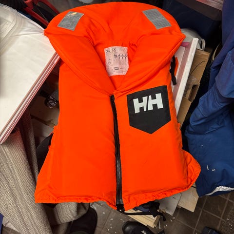 Helly Hansen pelastusliivi. Väri on oranssi ja liivissä on heijastimet olkapäiden kohdalla. Etuosassa on HH-logo ja pikalukollinen vyötäröremmi. Liivissä on haararemmit ja säädettävät hihnat istuvuuden varmistamiseksi. Tuotelapun mukaan liivi on CE-merkitty ja valmistettu Unkarissa EN ISO 12402 -standardin mukaisesti. Soveltuu veneilyyn ja muuhun vesillä liikkumiseen käyttäjän painoluokan ja kokomerkintöjen mukaan.