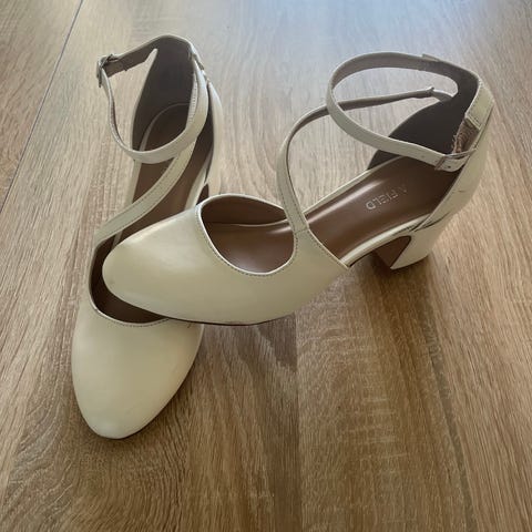 Valkoiset remmi avokkaat. Merkki Line Collection. Koko 36. Hinta 5e.