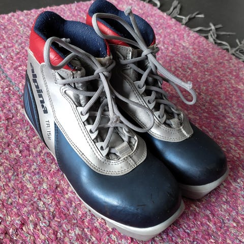 Hyvässä kunnossa olevat Alpina -hiihtomonot, koko 33. Mustat monot, joissa nauhakiinnitys ja päällä vetoketjullinen suojaläppä. Yhteensopiva NNN-tyyppisen siteen kanssa. Haapakankaalla.