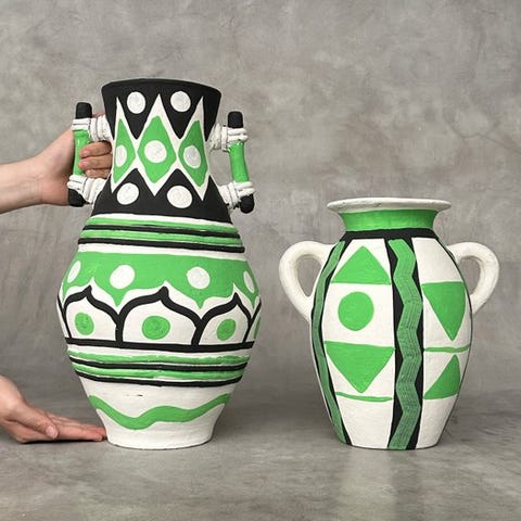 Perinteinen saviastia, joka on valmistettu luonnollisesta savesta ja maalattu luonnollisilla väreillä, poltettu korkeissa lämpötiloissa saavuttaakseen lämpimät, maanläheiset sävyt. Sen pinta on rustiikkinen matta, korostaen saven luonnollista tekstuuria. Astian pyöreä runko ja kapea kaula heijastavat klassista käsityönä tehtyä keramiikkasuunnittelua, ja sitä käytetään usein veden, viljan tai koristeiden säilyttämiseen. Kestävä mutta elegantti, se yhdistää toiminnallisuuden ja ajattoman käsityötaidon.Arvioidut mitatKorkeus: 23 cm, Leveys: 15 cm, Pituus: 15 cmVastuuvapauslausekeOle hyvä ja huomioi, että nämä kuvat on otettu pimeässä studiolla, ja värit voivat vaihdella ympäristön mukaan.> MAINITTU PAINO SISÄLTÄÄ PAKKAUSMATERIAALIN.LähetysKohde lähetetään seurantanumerolla DHL Parcelin, DPD:n tai postNlin kautta. Seuranta päivittyy Catawiki-luettelossasi, kun pakettisi on jätetty postiin.Ole hyvä ja tarkista säännöllisesti välttääksesi pakettisi palautumisen meille, jolloin ostaja vastaa toisen lähetyksen toimituskuluista.Seurantaan Espanjaan ja Portugaliin käytä tätä linkkiä ja lisää Catawiki-erästäsi saatu seurantanumero.https://clientesparcel.dhl.es/LiveTracking/HomeME EMME YHDISTÄ TOIMITUKSIA!!!Jos sinulla on kysyttävää paketistasi, ota meihin yhteyttä Catawiki-viestipalvelun kautta. Pyrimme vastaamaan kolmessa työpäivässä.