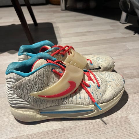 Nike Hyperdunk low koripallokenkä. Koko 45,5 (EU). Väritys musta-valkoinen. Kunto on hyvä ja kengät on ollut erittäin vähällä käytöllä, eikä ulkona käyttöä. Jalkaterän tekstiili on jämäkässä ja kimmoisassa kunnossa, eli kengän ristituki on vielä vahva. Pohjan kitka ja kuvio on hyvässä kunnossa ja pehmeyttä/joustoa löytyy vielä. Nouto Herttoniemestä sovitusti ja MobilePay maksu 40e.