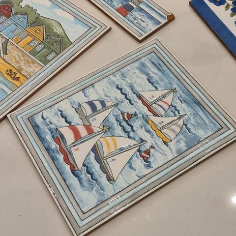 Vintage italialainen keraaminen laatta 1990-luvulta jossa on Neljän Juuston Risoton resepti.
