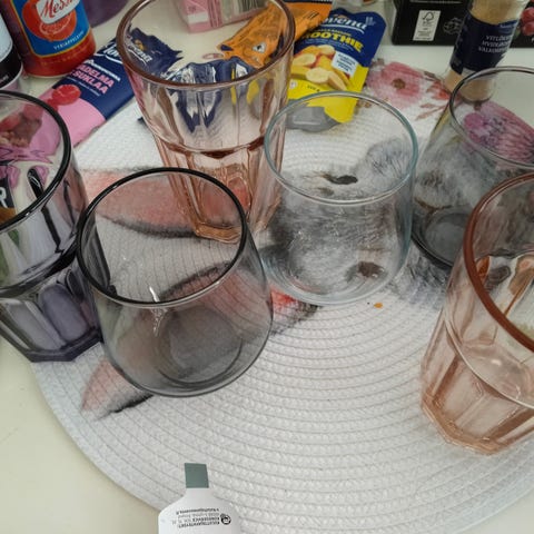 4 viinilasia, 2 kuoharilasia, sekä 2 muuta lasia. Laukaan keskustassa.