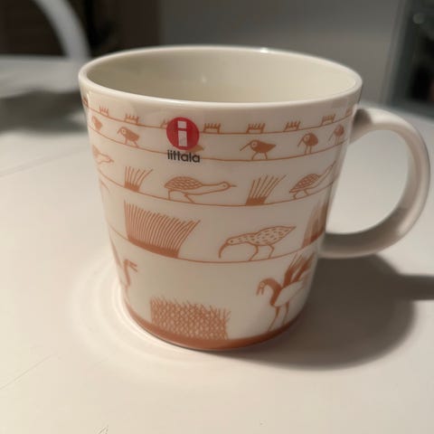 Iittala kahvikuppi iittalan kahvikupit kahvi kahvimuki kahvimukit ruutu ruudut lahja lahjaksi 0,3 uusi uudet arabia arabian käyttämättömät mukit toikan keräily lintu ruskea ruskeat lintuja