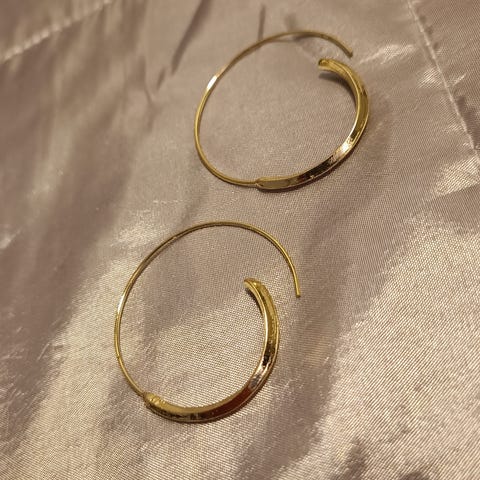 Yksittäisiä kertoja käytetyt korvakorut polkupyörän renkaista. Säilytetty umpinaisessa laatikossa suojassa, ei alkuperäispakkausta tallessa.