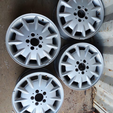 Alkup. W126 leveämmät 6,5 x 14 vanteet vähän ajetuilla Nokian Q kitkoilla . Vanteissa jäähdytyspellit ehjät . Hopeiset vannekehät ei tule mukaan . Löytyy myös 6 x 14 alkup. pellit ja 7 x 15 et 25 3 kpl lähes uudenveroisia plus 5 puola AMG replikat 7 x 15 et 25 pari sarjaa