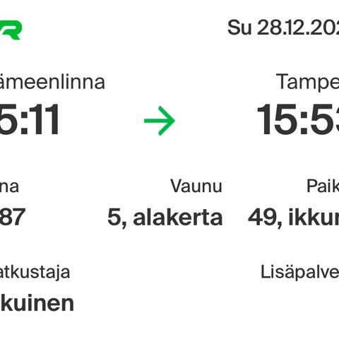 Junalippu Rovaniemi -Helsinki 29.3.