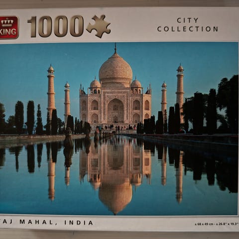 MB Puzz 3D Taj Mahal palapeli. Kolmiulotteinen palapeli, josta rakentuu Taj Mahalia esittävä malli. Pakkaus sisältää palat ja ohjeet rakennelman kokoamiseen. Tässä on haastetta kun paloja on peräti 1077. Palat puhtaita ja siistejä kuten kuvissa näkyykin. Laatikon koko 45x30x10 cm Palat ovat vaahtomuovia, joten on kevyt rakentaa ja kätevästi käy. En ole tätä koonnut, koska pidän vähän vähemmästä määrää paloja palapeleissä.