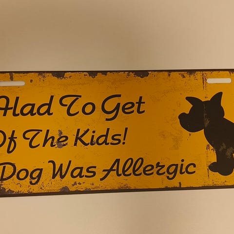 Kuvan mukainen peltikyltti ketjulla.