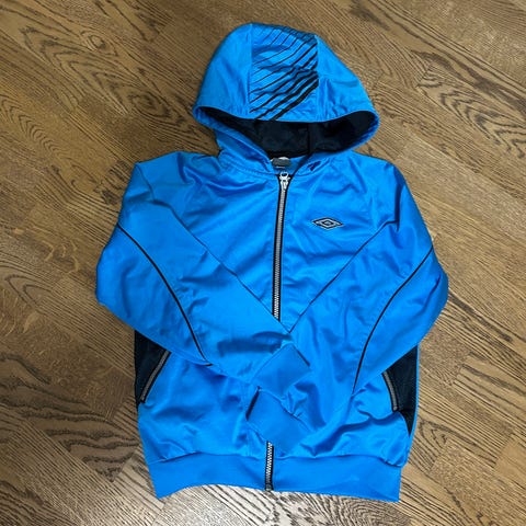 Umbro verkkatakki lapselle, koko 152. Takki on musta ja siinä on vetoketju edessä. Hihoissa kulkee tehosteraidat ja resorit hihansuissa sekä helmassa. Sopii arkeen ja erilaisiin liikuntaharrastuksiin.